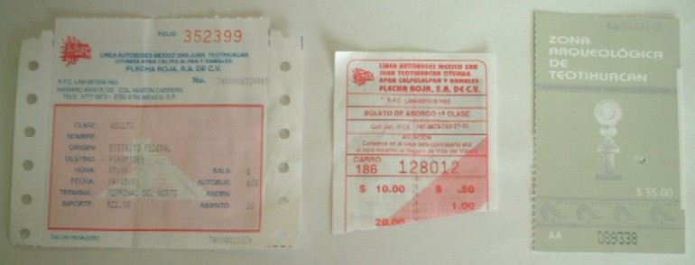 窓口でTEOTIHUACANと言うと、PIRAMIDES? と返事が返ってきたので Si と返事をして料金を払い出発時間を確認してチケットを受け取りました。