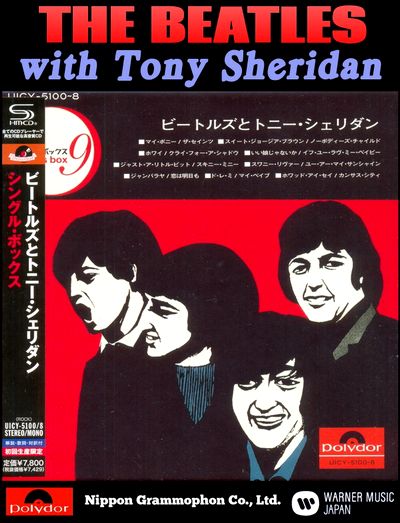The Beatles with Tony Sheridan Single Box 9 Released: 31 July 2013 Label: Universal Music Japan UICY-5100/8 Track Listing: Disc 1 1. My Bonnie (German Intro / mono) 2. The Saints (Mono) 3. My Bonnie (English Intro / Mono) 4. My Bonnie (Without Intro / Mono) 5. My Bonnie (German Intro / Stereo) 6. The Saints (Stereo) 7. My Bonnie (English Intro / stereo) 8. My Bonnie (Without Intro / stereo) Disc 2 1. Sweet Georgia Brown (version 1 With The Beatles / Mono) 2. Deeds Norbody's Child (With The Beatles version / Mono) 3. Sweet Georgia Brown (With The Beatles version 2 / Mono) 4. Sweet Georgia Brown (U.S. version / Mono) 5. Nobody's Child (U.S. version / Mono) 6. Sweet Georgia Brown (With The Beat Brothers Version / Mono) 7. Sweet Georgia Brown (With Big Six Version / Mono) 8. Nobody's Child (Solo Version / Mono) 9. Sweet Georgia Brown (version 1 With The Beatles / Stereo) 10. Nobody's Child (With The Beatles version / stereo) 11. Sweet Georgia Brown (With The Beatles version 2 / stereo) 12. Sweet Georgia Brown (With The Beat Brothers version / stereo) 13. Sweet Georgia Brown (With Big Six Version / Stereo) Disc 3 1. Why (Mono) 2. Cry For A Shadow (mono) 3. Why (Stereo) 4. Cry For A Shadow (Stereo) Disc 4 1. Is not She Sweet (Mono) 2. If You Love Me, Baby (Mono) 3. Is not She Sweet (U.S. version / Mono) 4. If You Love Me, Baby (U.S. Version / Mono) 5. Is not She Sweet (Stereo) 6. If You Love Me Baby (Stereo) Disc 5 1. Just A Little Bit (mono) 2. Skinny Minny (With Big Six Version / Mono) 3. Skinny Minny (With The Beat Brothers Version / Mono) 4. Just A Little Bit (Stereo) 5. Skinny Minny (With Big Six Version / Stereo) 6. Skinny Minny (With The Beat Brothers version / stereo) Disc 6 1. Swanee River (Mono) 2. You Are My Sunshine (Mono) 3. Swanee River (Stereo) 4. You Are My Sunshine (Stereo) Disc 7 1. Jambalaya (Mono) 2. Will You Still Love Me Tomorrow (Mono) 3. Jambalaya (Stereo) 4. Will You Still Love Me Tomorrow (Stereo) Disc 8 1. Do Re Mi (Mono) 2. My Babe (Mono) 3. Do-Re-Mi (Stereo) 4. My Babe (Stereo) Disc 9 1. What'd I Say (Mono) 2. Kansas City (Mono) 3. What'd I Say (Stereo) 4. Kansas City (Stereo) |
