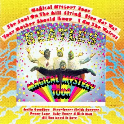 The Beatles: John Lennon – vocals, guitar, keyboards (acoustic and electric pianos, mellotron, organ, clavioline), harmonica on "The Fool on the Hill" Paul McCartney – vocals, bass, piano, mellotron, recorder on "The Fool on the Hill" George Harrison – vocals, guitar, organ, harmonica on "The Fool on the Hill" Ringo Starr – drums and percussion Additional musicians: "Magical Mystery Tour" – Mal Evans and Neil Aspinall on percussion, David Mason, Elgar Howarth, Roy Copestake and John Wilbraham on trumpets "The Fool on the Hill" – Christoper Taylor, Richard Taylor and Jack Ellory on flute "I Am the Walrus" – Sidney Sax, Jack Rothstein, Ralph Elman, Andrew McGee, Jack Greene, Louis Stevens, John Jezzard and Jack Richards on violins, Lionel Ross, Eldon Fox, Brian Martin and Terry Weil on cellos and Neill Sanders, Tony Tunstall and Morris Miller on horns, Peggie Allen, Wendy Horan, Pat Whitmore, Jill Utting, June Day, Sylvia King, Irene King, G. Mallen, Fred Lucas, Mike Redway, John O'Neill, F. Dachtler, Allan Grant, D. Griffiths, J. Smith and J. Fraser on backing vocals "Hello, Goodbye" – Ken Essex, Leo Birnbaum on violas. "Strawberry Fields Forever" – Mal Evans on percussion, Tony Fisher, Greg Bowen, Derek Watkins and Stanley Roderick on trumpets and John Hall, Derek Simpson, Norman Jones on cellos. "Penny Lane" – Ray Swinfield, P. Goody, Manny Winters and Dennis Walton on flutes, Leon Calvert, Freddy Clayton, Bert Courtley and Duncan Campbell on trumpets, Dick Morgan and Mike Winfield on English horns, Frank Clarke on double bass and David Mason on piccolo trumpet "Baby, You're a Rich Man" – Eddie Kramer on vibraphone "All You Need Is Love" – George Martin on piano, Mick Jagger, Keith Richards, Marianne Faithfull, Keith Moon, Eric Clapton, Pattie Boyd Harrison, Jane Asher, Mike McCartney, Maureen Starkey, Graham Nash and wife, Gary Leeds and Hunter Davies on backing vocals, Sidney Sax, Patrick Halling, Eric Bowie and Jack Holmes on violins, Rex Morris and Don Honeywill on sax, David Mason and Stanley Woods on trumpets, Evan Watkins and Henry Spain on horns, Jack Emblow on accordion and Brian Martin on cello | |